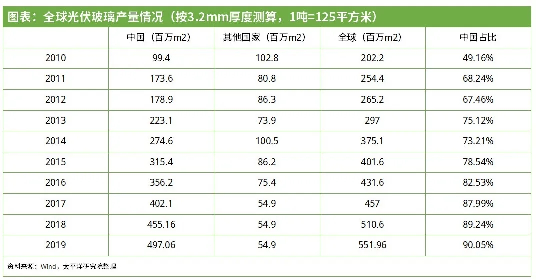 截止2019年,中國已經(jīng)成為光伏玻璃的最大出口國,產(chǎn)量占比達到全球90%以上。